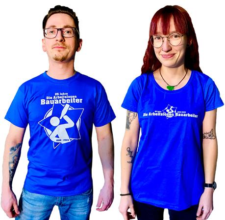 Hol Dir jetzt das brandneue 25 Jahre Jubiläums-Shirt in schickem blau mit weißem Aufdruck.